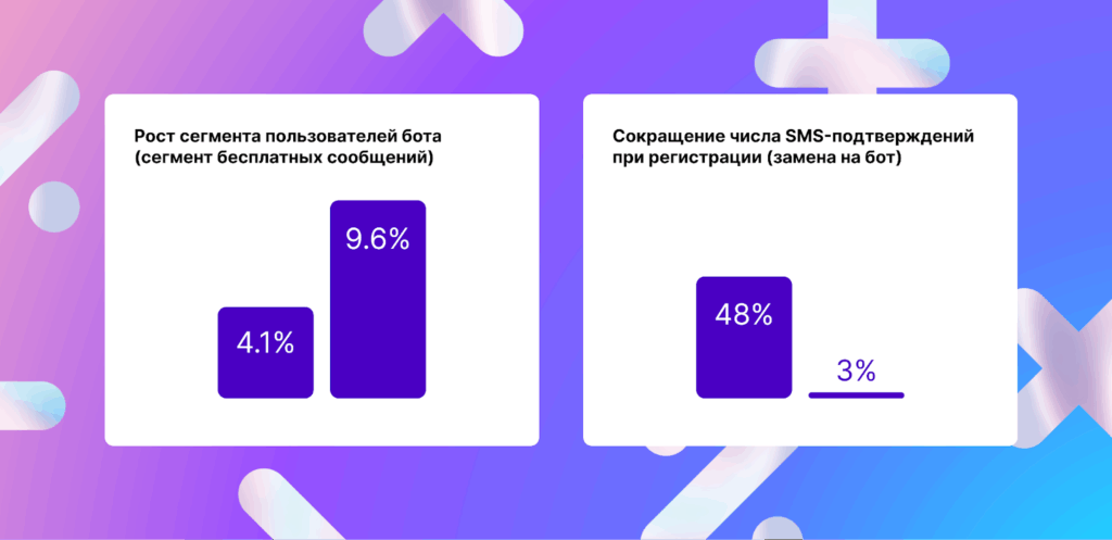 Сокращение расходов на SMS-подтверждения при регистрации почти до нуля: почти 100% новых регистраций теперь проходят через Telegram-бот без платных подтверждений.
