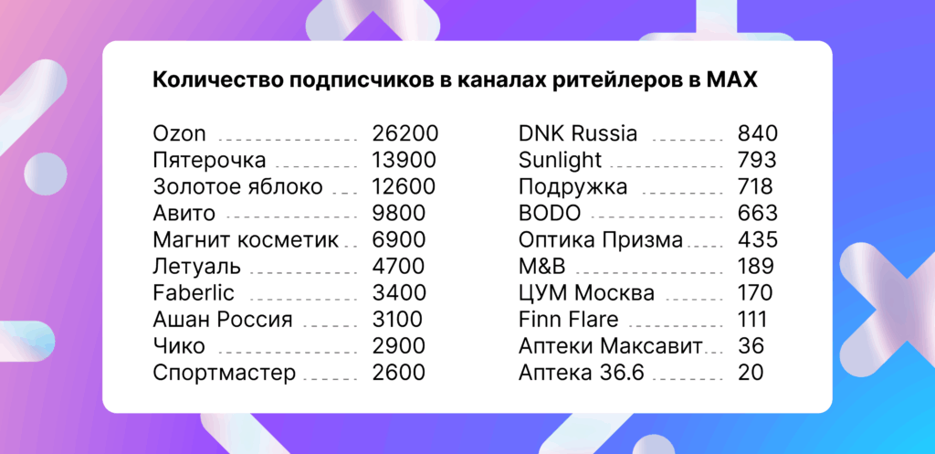 Отсюда и интересы — образование, здоровье, повседневные покупки, базовый fashion. Это делает MAX более прикладным каналом по сравнению с классическими соцсетями.