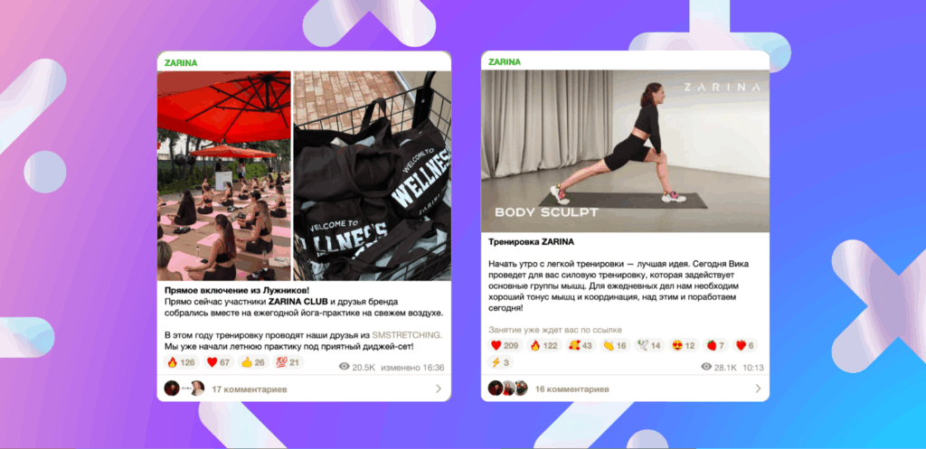 Zarina в летний период проводит бесплатные тренировки по йоге в городских парках. Для участия требуется регистрация через социальные сети или сайт бренда, что позволяет собирать контактные данные и привлекать трафик в цифровую среду.